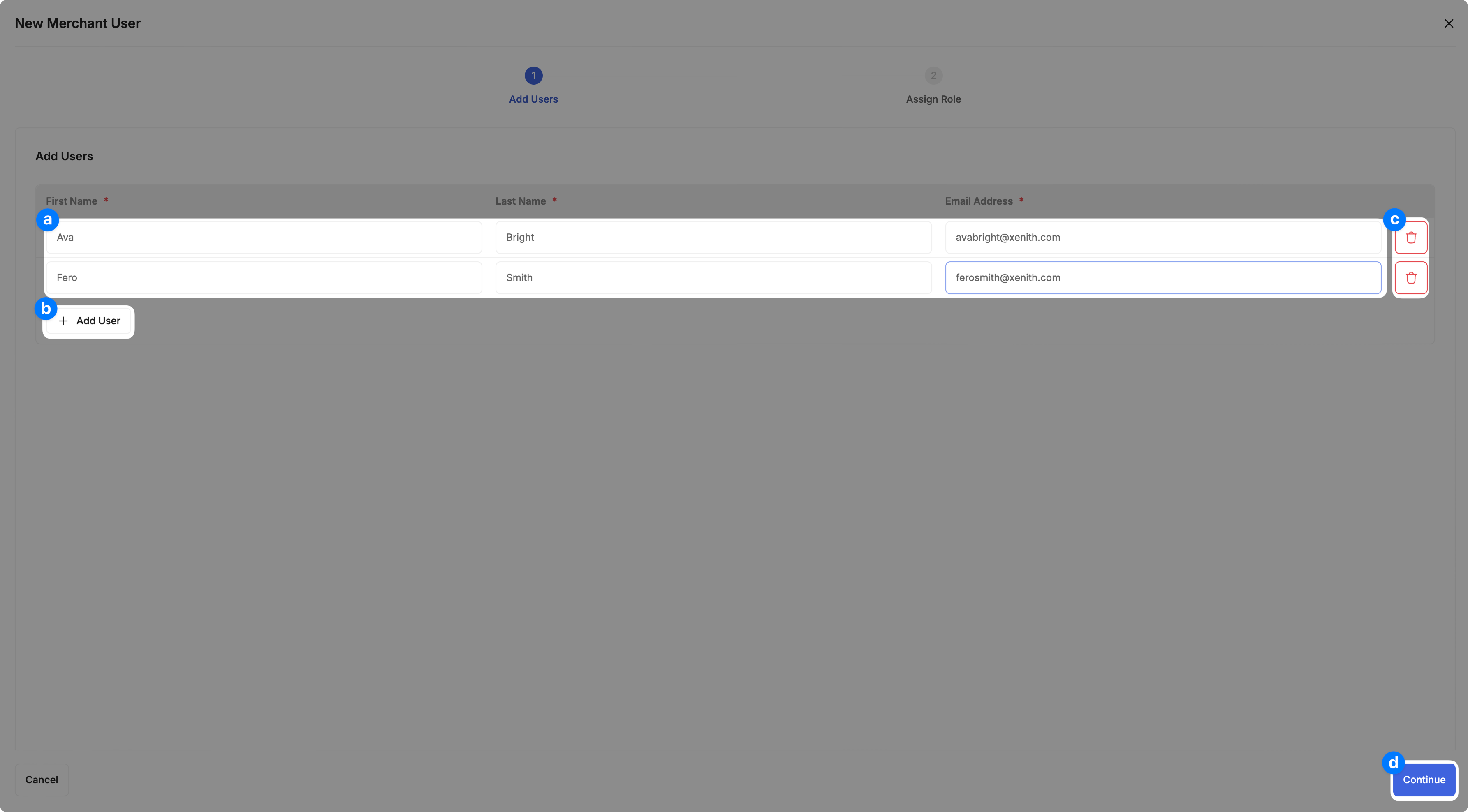 - To add multiple users, click "+ Add User".